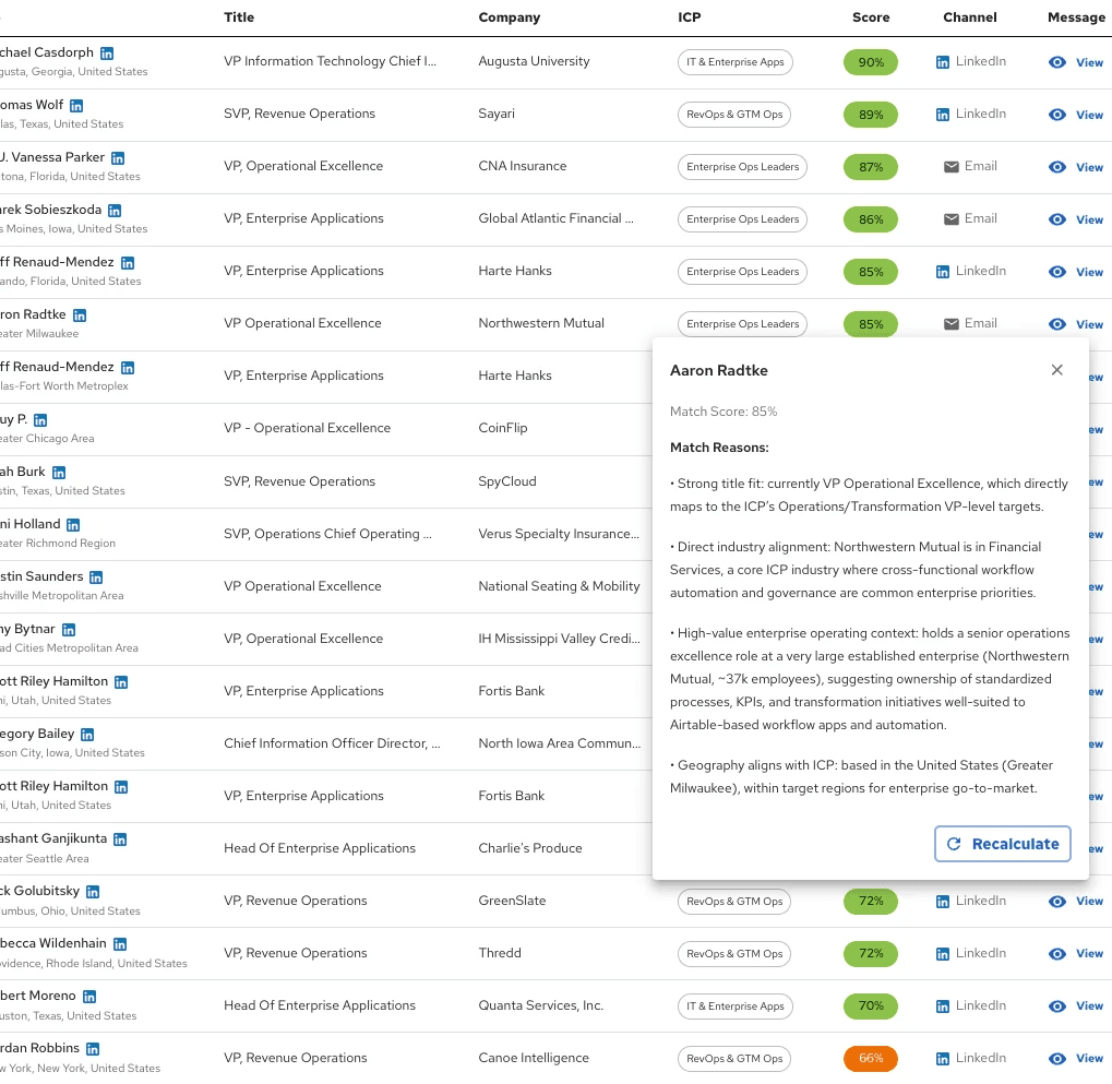Agents profile millions of execs and scores the ones that best fit the ICP