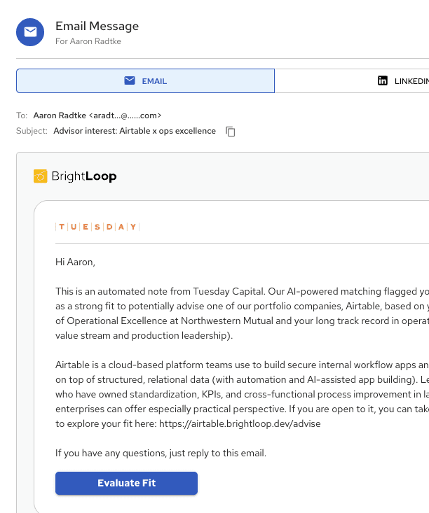 Agents ID the optimal channel to reach each executive and script a personal invite